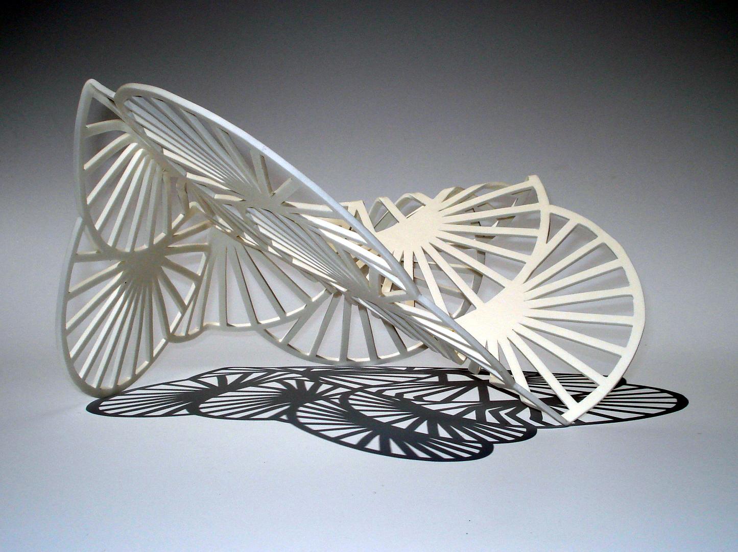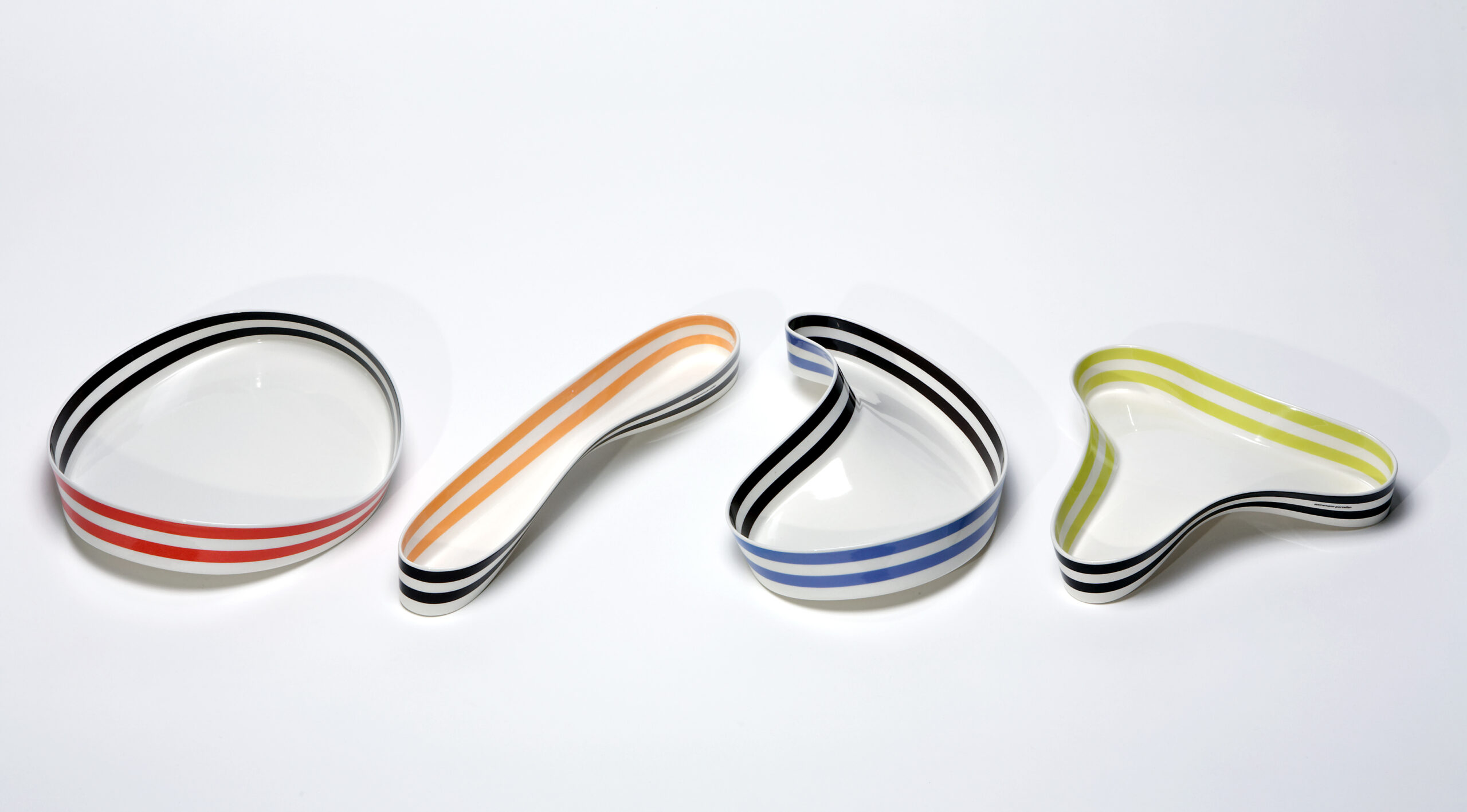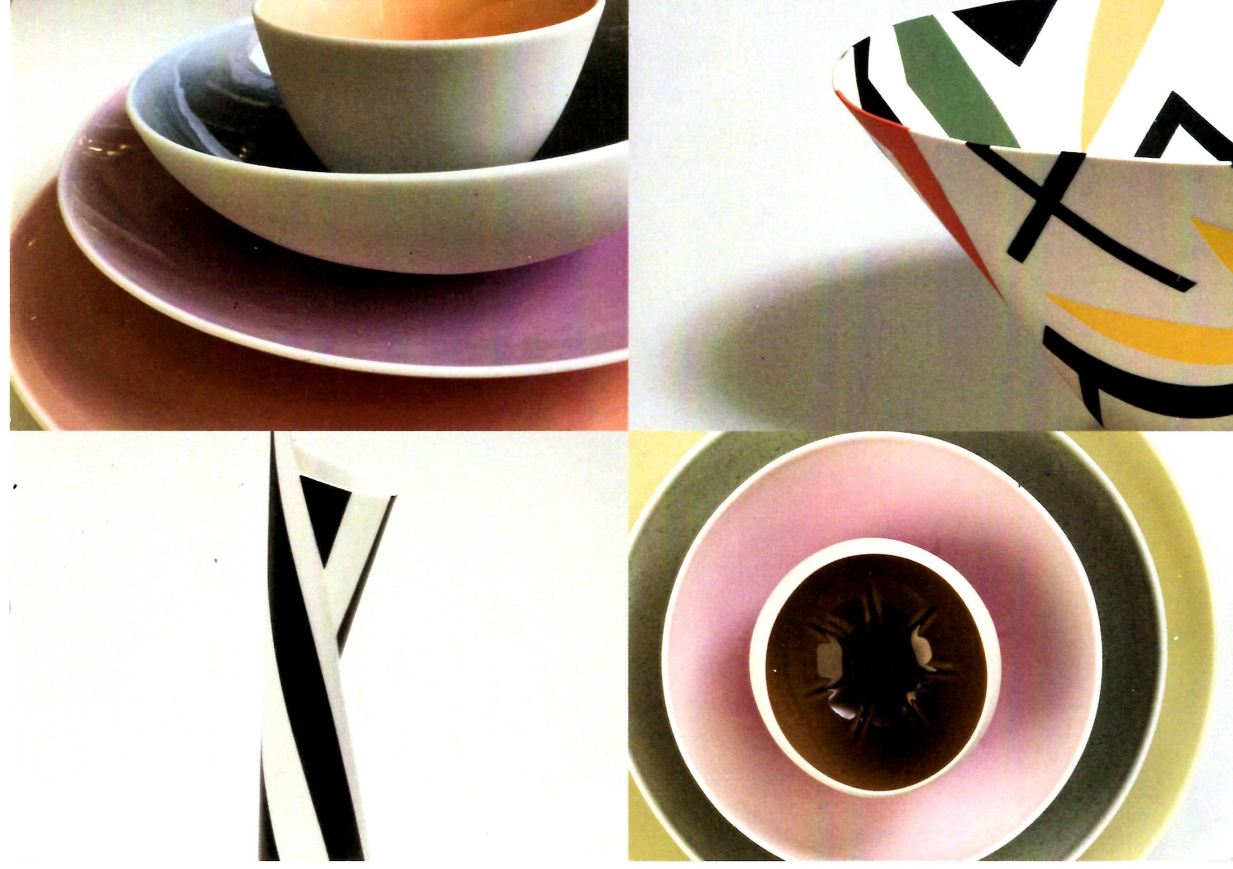 “Here the floating elegance of the shapes has the dynamic of an inspired conversation (while eating) and remembers playfully the process of handling the wet, flexible material. The gentle composition of colours makes me hear the laughter of a dinner party at its best.” Gabi Dewald